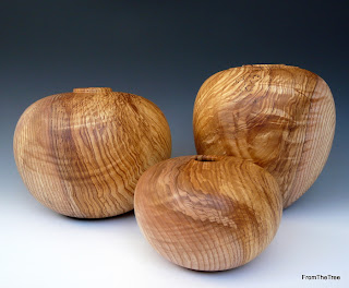 Here's three forms which were all made from a large crotch section of wind blown Ash. I don't normally work with allot of Ash but as soon as I seen the figure in this wood I knew I'd like it and make an exception!!